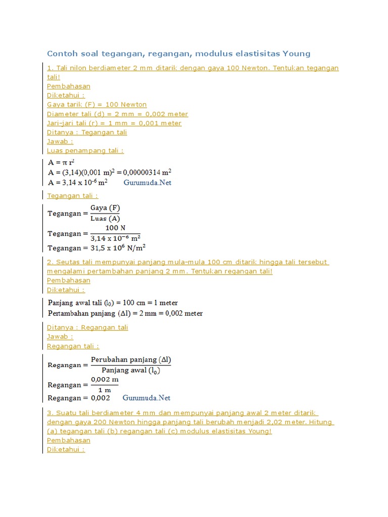 Contoh Soal Tegangan Reganagan Modulus Young Pdf